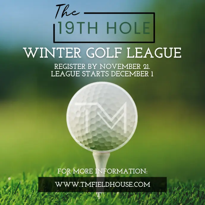 Join our Winter Golf League at The 19th Hole at TM Fieldhouse—consistent tee times, competitive formats, and a fun crew.