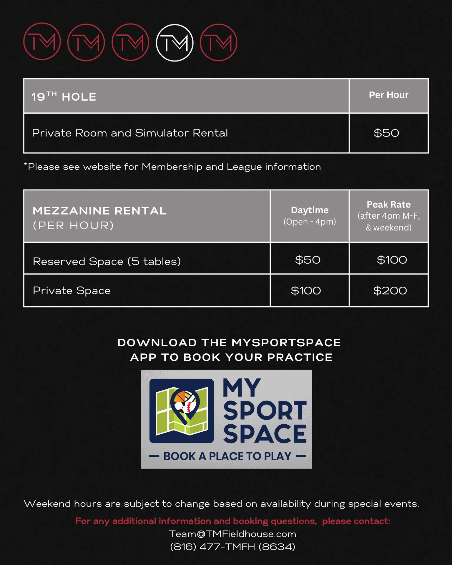 Hours are subject to change based on events and occupancy.